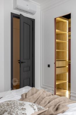 Удачная планировка с 2-мя французскими балконами в виде распашных окон в пол позволяет еще больше наслаждаться видами набережной Москвы реки.