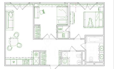 Предусмотрена гардеробная в спальне и отдельная постирочная.