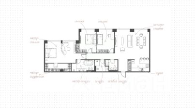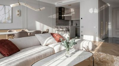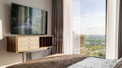 Спланирована кухня-гостиная, мастер-спальня со своей гардеробной и ванной комнатой, 2 спальни, гостевой санузел, постирочная, прихожая. Благодаря панорамному остеклению и потолкам высотой 3,1 метра, пространство в квартире всегда наполнено светом и свежим воздухом.