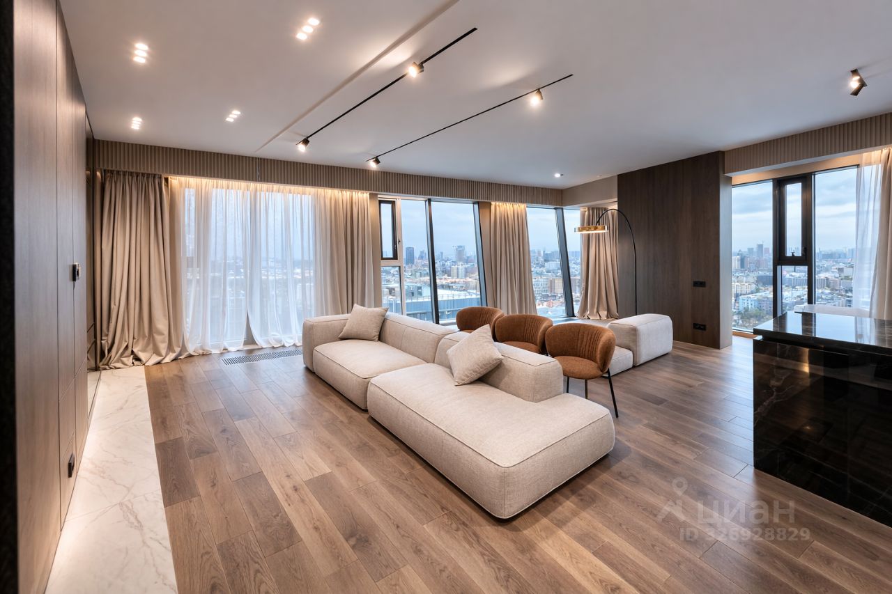 Идеальный вариант для семьи с 23 детьми . Просторная новая 4-х комнатная видовая квартира на 26 этаже в ЦАО, район Якиманка с дизайнерской премиум отделкой и мебелью