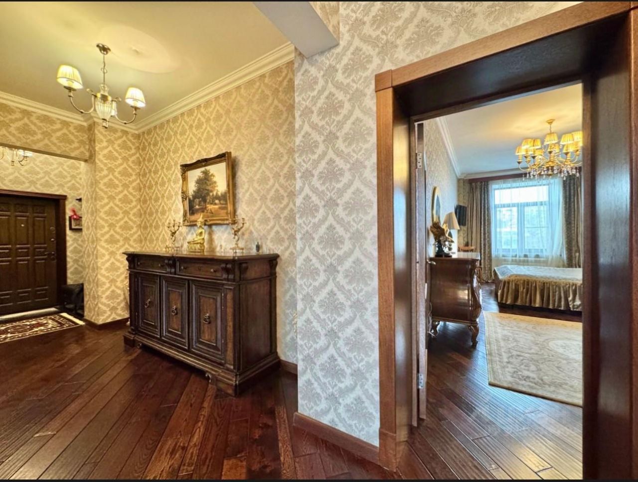 -интерьер квартиры выполнен в классическом стиле по эксклюзивному авторскому проекту. Мебель и техника премиальных известных брендов ( на полу североамериканский паркет, мебель Vaccari (Италия), сантехника вся Omoikiri (Япония), окна и фурнитура Roto с защитой, бытовая техника SMEG, прихожая Bogacho, кухня итальянская под заказ, хрустальные люстры из г. Карловы Вары, обои Limonta (Италия), телевизоры Samsung, столешницы и подоконники из искусственного камня Motinorizi (Италия). В стоимость объекта частично входит роскошная мебель и техника.