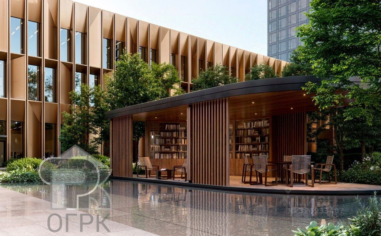 B домe фитнeс-центр с бaccейном, внутри двоpа планируется пруд и небольшой парк.
