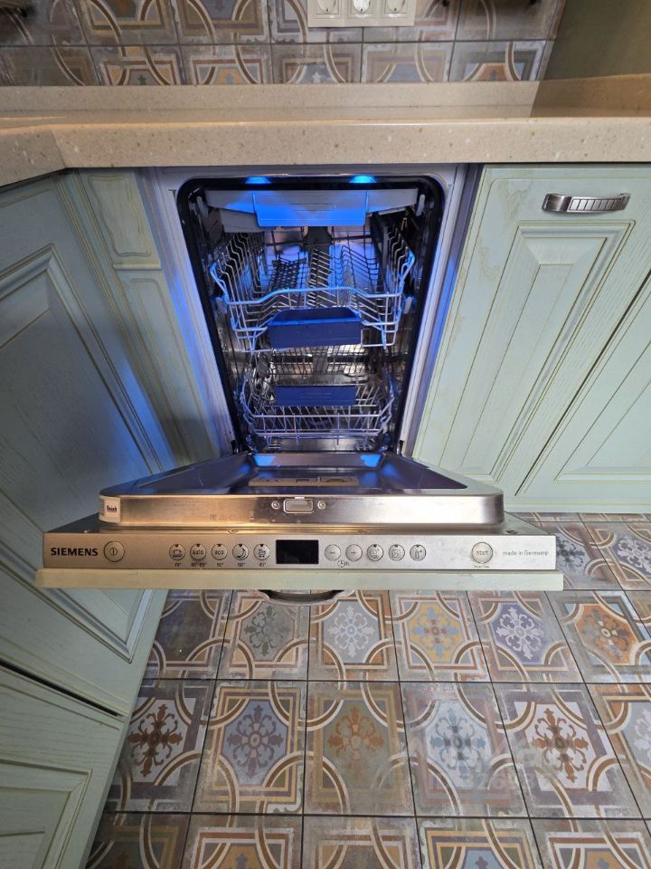Техника: Кухня укомплектована техникой Siemens (встроенный духовой шкаф с функцией СВЧ 2-в-1 и посудомоечная машина) и 2-конфорочной газовой панелью Smeg.