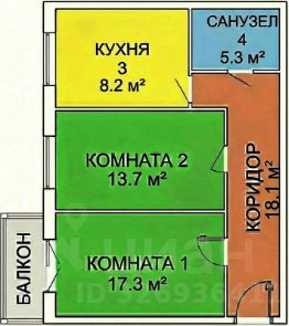 Комнаты (17,3 и 13,7 м²): Изолированные. Все окна выходят в тихий двор. Из большой комнаты — выход на застекленный балкон.