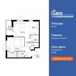 Продаётся 2-к квартира номер 1085 общей площадью 46.7 кв.м. на 21-м этаже 25 этажного здания. Отделка Whitebox. Цена с учётом скидки.