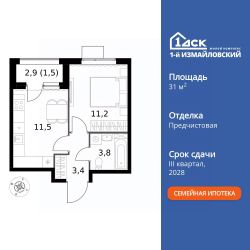 Продаётся 1-к квартира номер 955 общей площадью 31.4 кв.м. на 9-м этаже 25 этажного здания. Отделка Whitebox. Цена с учётом скидки.