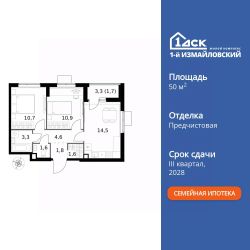 Продаётся 2-к квартира номер 958 общей площадью 50.7 кв.м. на 9-м этаже 25 этажного здания. Отделка Whitebox. Цена с учётом скидки.