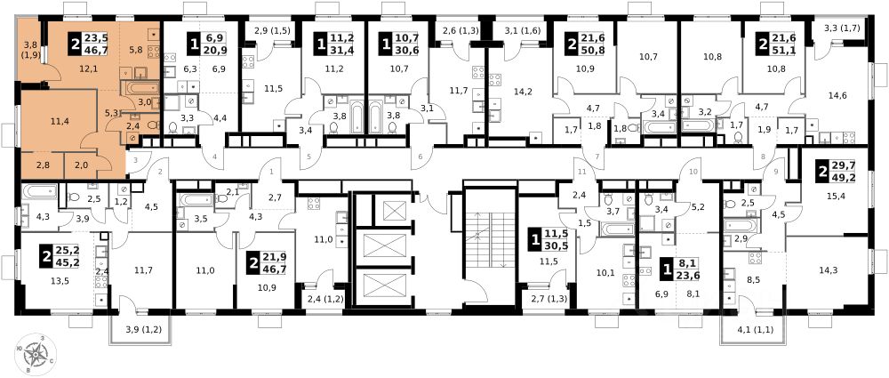 Продаётся 2-к квартира номер 964 общей площадью 46.7 кв.м. на 10-м этаже 25 этажного здания. Отделка Whitebox. Цена с учётом скидки.