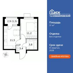 Продаётся 1-к квартира номер 1120 общей площадью 31.4 кв.м. на 24-м этаже 25 этажного здания. Без отделки. Цена с учётом скидки.