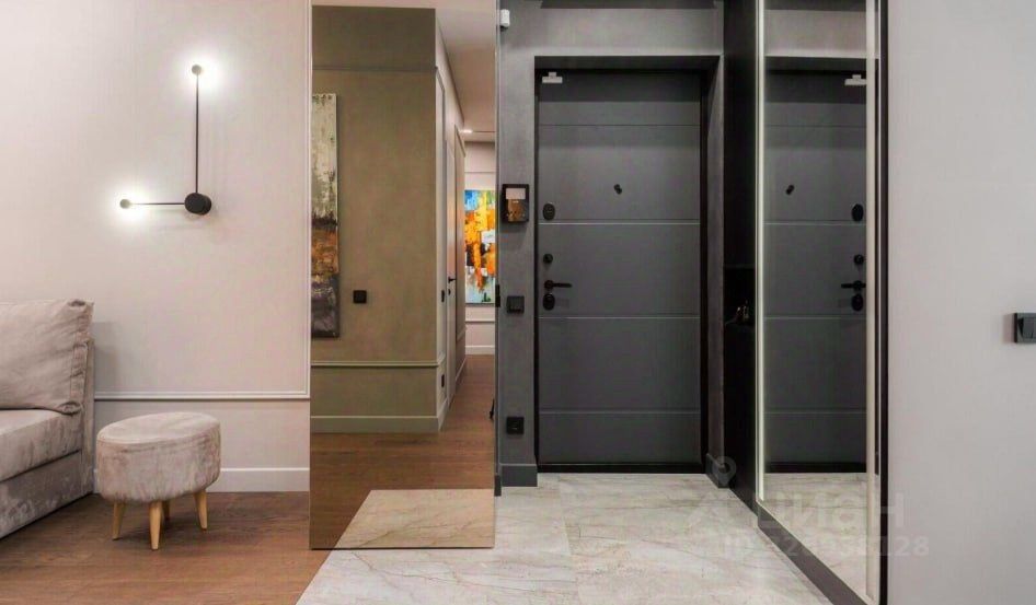 Гардеробная дверь система Magis с зеркалом, входная метал.