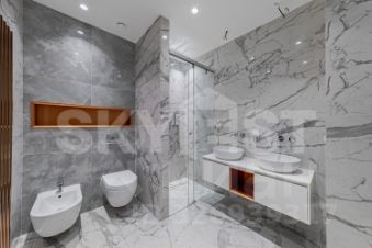 Планировка: кухня-гостиная, 3 спальни, 2 ванные комнаты, гардеробная, гостевой санузел.