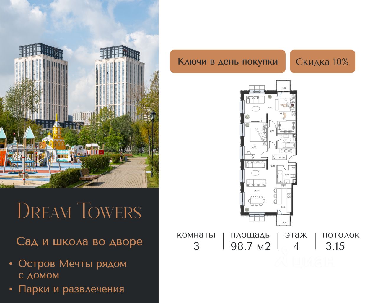 ЖК Dream Towers — проект премиум-класса в окружении парков и набережной, с полностью готовой инфраструктурой для комфортной жизни и отдыха.