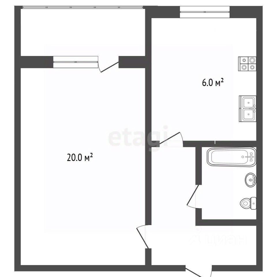 Общая площадь квартиры составляет 34,7 кв метров, кухня - 6 кв.м, комната - 20 кв.м, совмещенный с/у, есть застекленная лоджия. Окна выходят на улицу. Квартира под ремонт. В квартире никто не проживает.