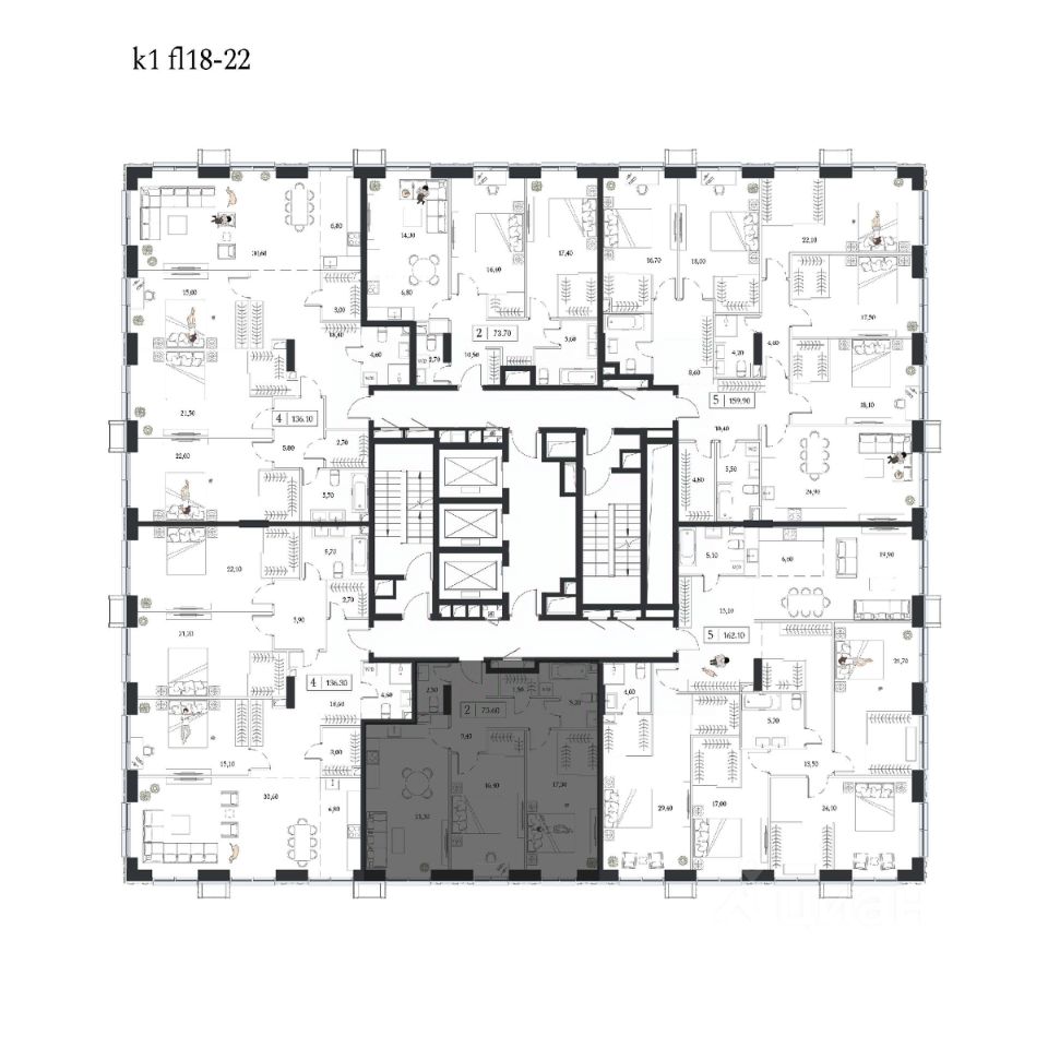 Общая площадь: 73.6 кв.м. Высота потолков от 3.15 м.