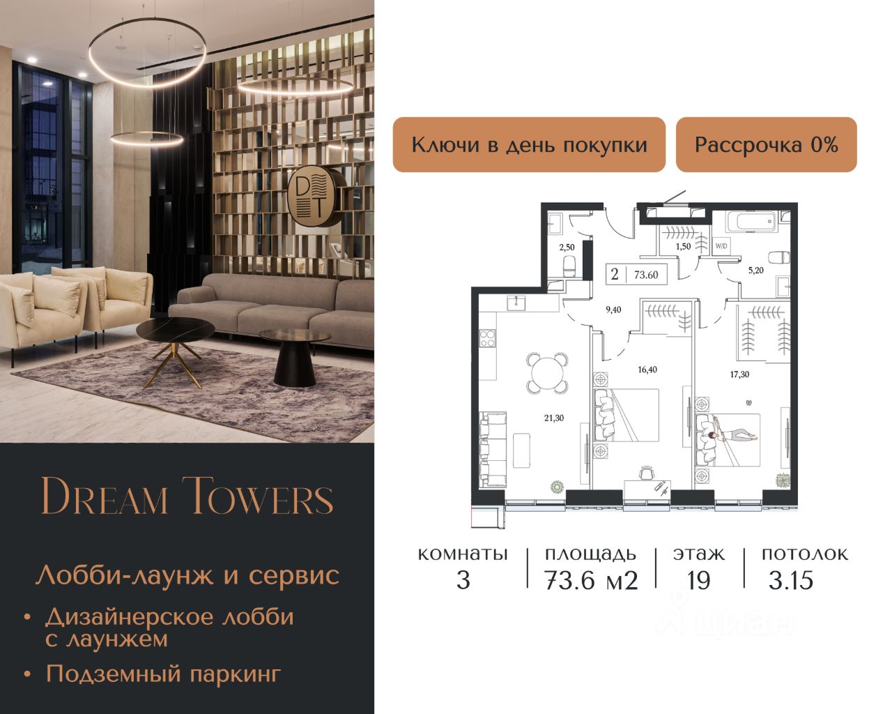 ЖК Dream Towers — проект премиум-класса в окружении парков и набережной, с полностью готовой инфраструктурой для комфортной жизни и отдыха.
