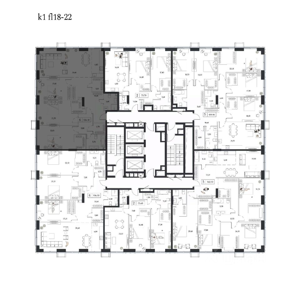 • эргономичные планировки от 40 до 162 м2;