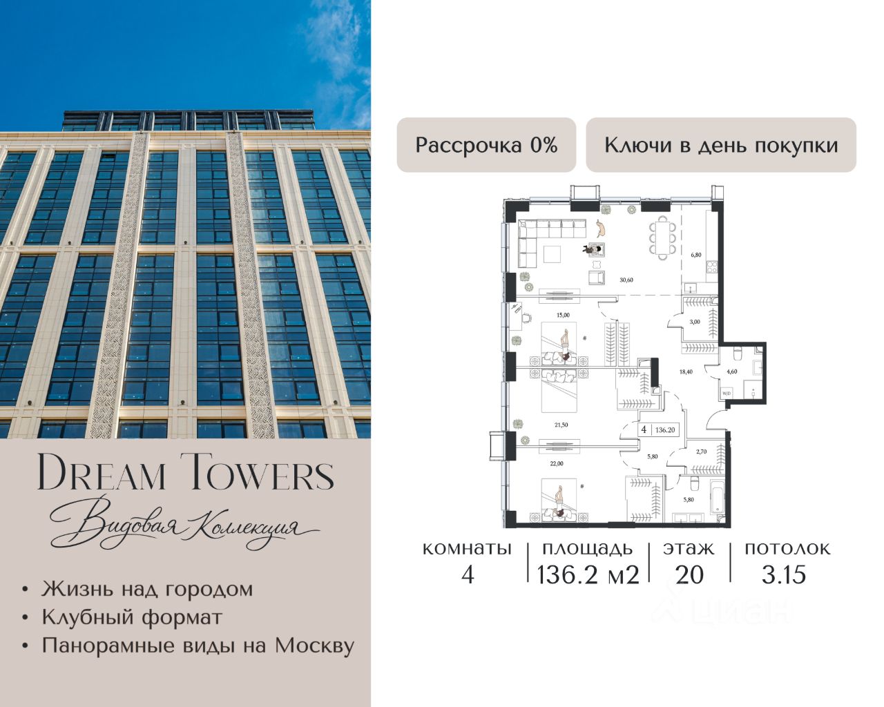 ЖК Dream Towers — проект премиум-класса в окружении парков и набережной, с полностью готовой инфраструктурой для комфортной жизни и отдыха.
