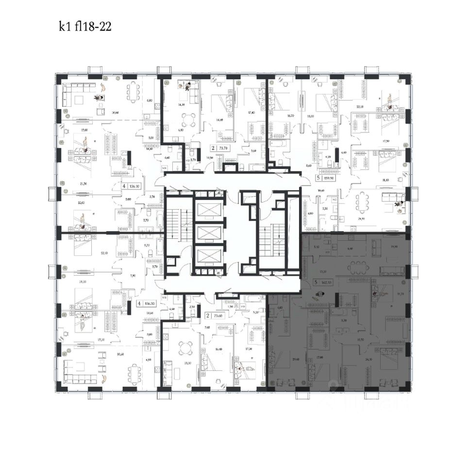 • эргономичные планировки от 40 до 162 м2;