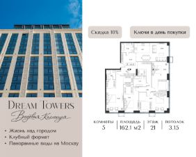 ЖК Dream Towers — проект премиум-класса в окружении парков и набережной, с полностью готовой инфраструктурой для комфортной жизни и отдыха.