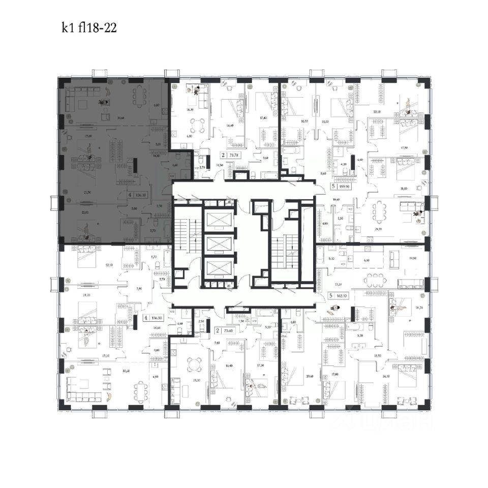 Общая площадь: 136.1 кв.м. Высота потолков от 3.15 м.