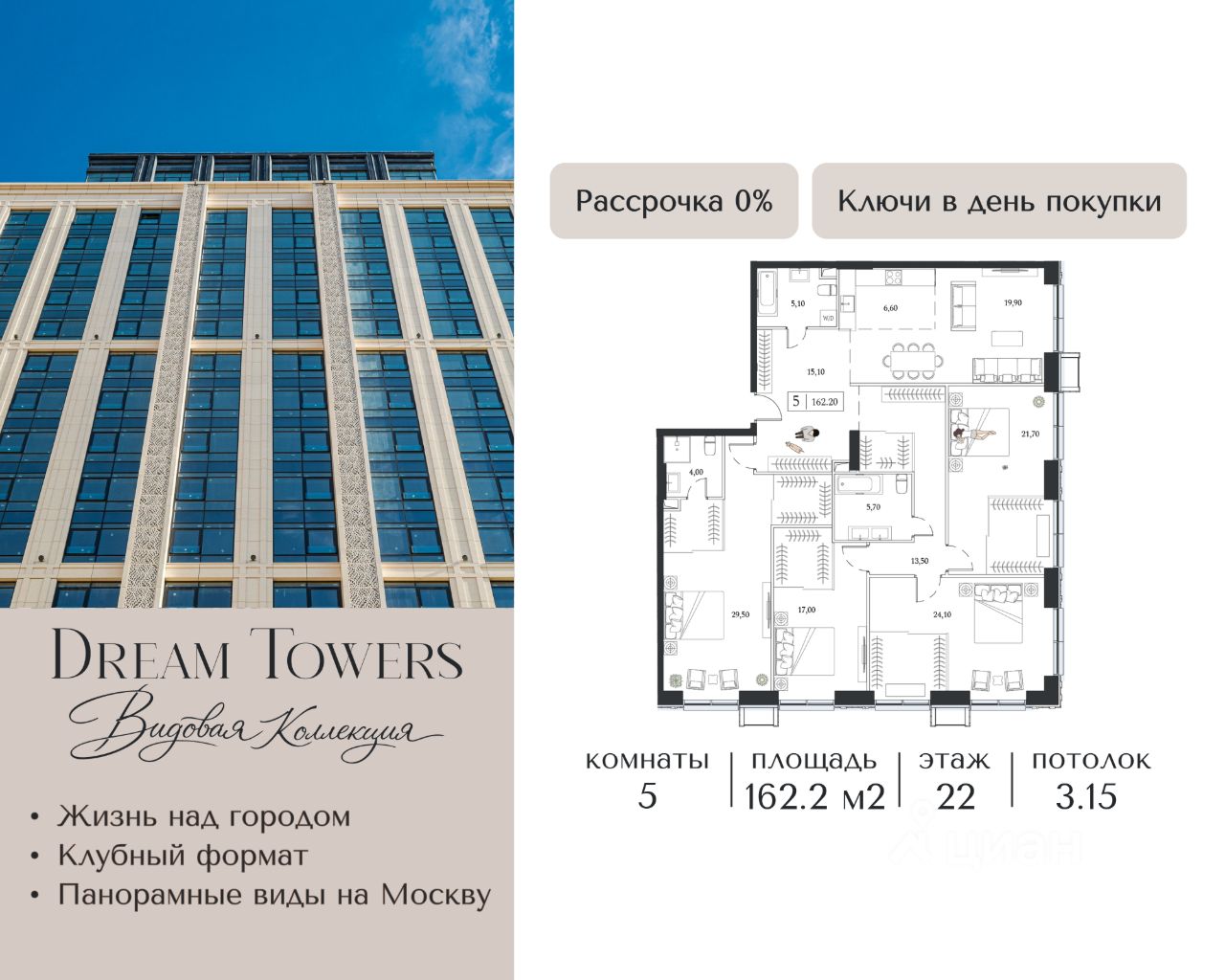 ЖК Dream Towers — проект премиум-класса в окружении парков и набережной, с полностью готовой инфраструктурой для комфортной жизни и отдыха.