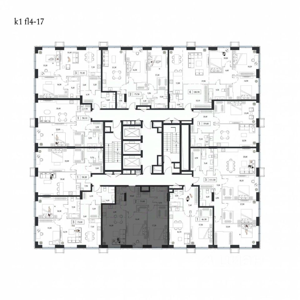 Общая площадь: 73.6 кв.м. Высота потолков от 3.15 м.