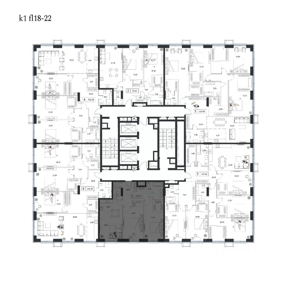 Общая площадь: 73.7 кв.м. Высота потолков от 3.15 м.