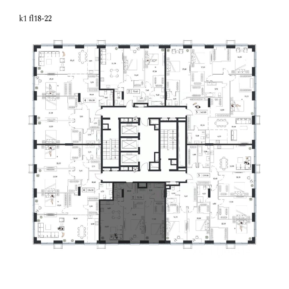 Общая площадь: 73.6 кв.м. Высота потолков от 3.15 м.