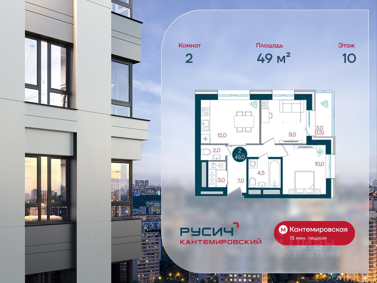 Продается двухкомнатная квартира 83 в новостройке ЖК "Русич Кантемировский" по адресу Москва, ЮАО, Царицыно, Кавказский бульвар, вл. 51/2, корп. 1. Общая площадь квартиры - 49.00 кв. м., этаж 10 из 32, секция 1. Тип проекта, по которому построен дом - монолит, компания-застройщик - Концерн "Русич". Стоимость квартиры - Р. Срок сдачи - 3 квартал 2026. Более подробная информация по телефону.