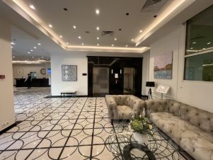В холле дома на ресепшене круглосуточно дежурят приятные консьержи, установлены просторные немецкие лифты, которые разделены - одними пользуются только собственники и проживающие, вызов по спец. метке, а другими гости и офисные сотрудники.