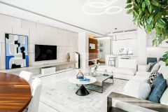 Планировка: гостиная-кухня, две спальни с собственными ванными, гардеробная комната, гостевой с\у.