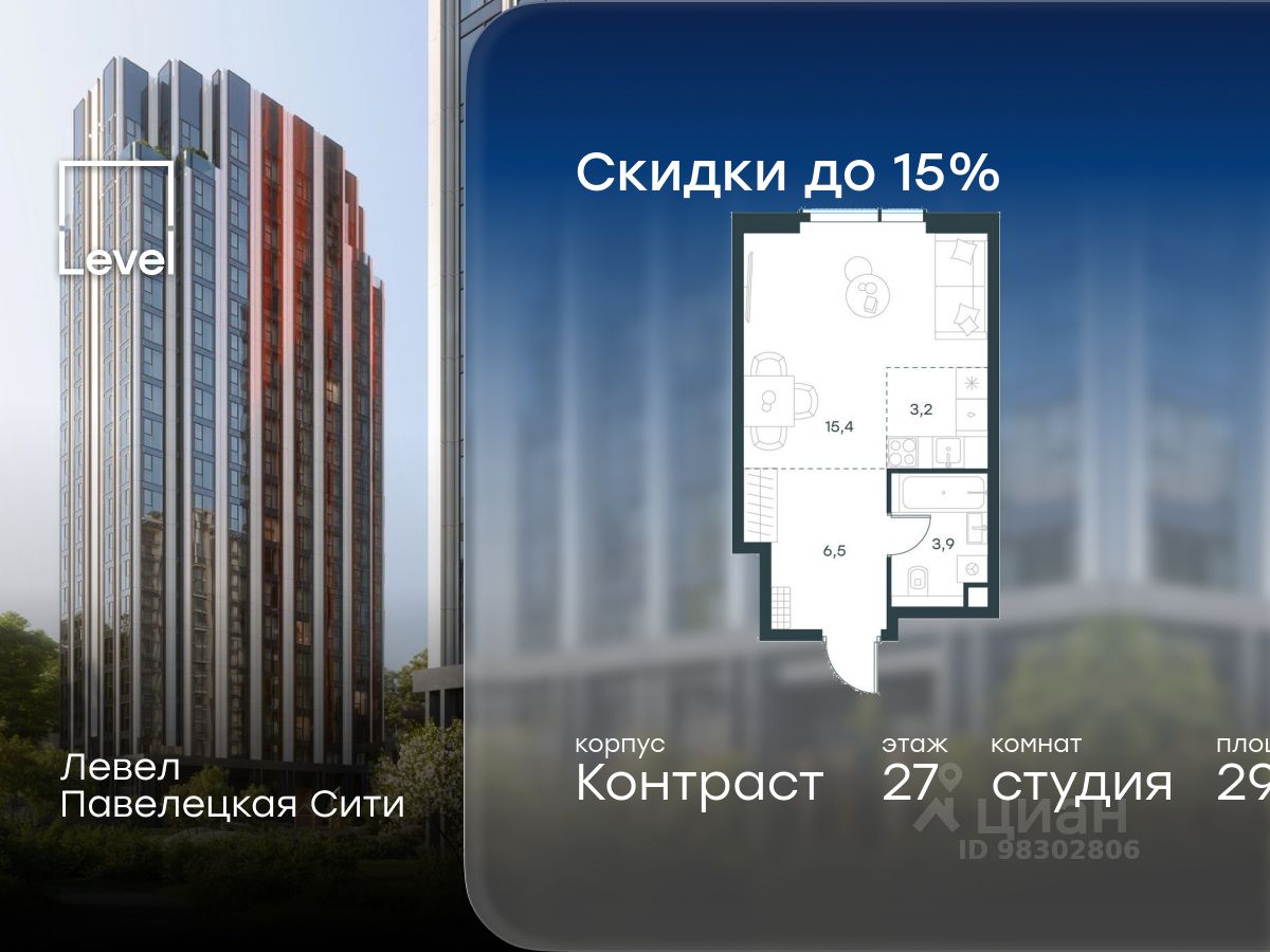 В Даниловском районе столицы (ЮАО) продаётся студия площадью 29.00 кв.м без отделки. Квартира расположена на 27 этаже 27-этажного корпуса 'Горизонт' в жилом комплексе бизнес-класса Левел Павелецкая Сити. Высота потолков 3.60м.
