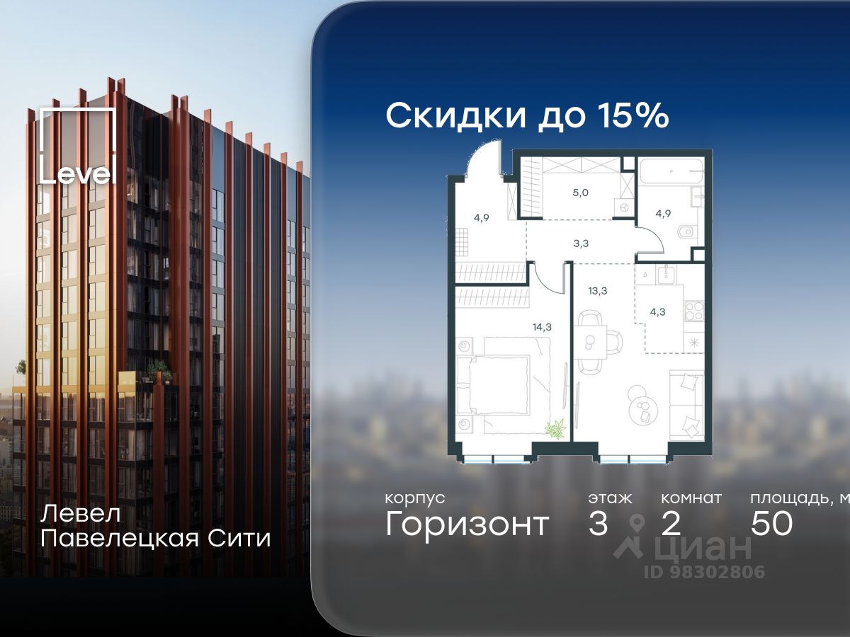 В Даниловском районе столицы (ЮАО) продаётся 2-комнатная квартира площадью 50.00 кв.м без отделки. Квартира расположена на 3 этаже 20-этажного корпуса 'Горизонт' в жилом комплексе бизнес-класса Левел Павелецкая Сити. Высота потолков 3.00м.