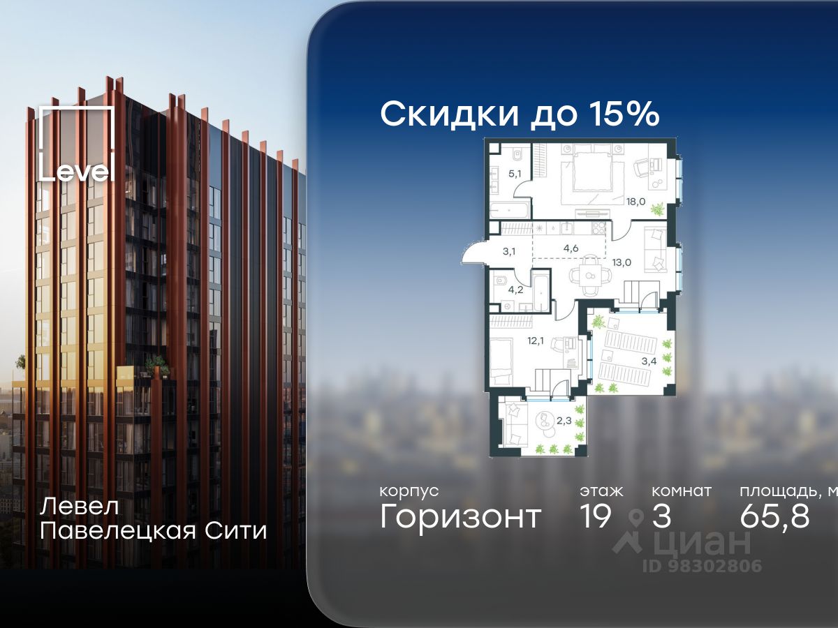 В Даниловском районе столицы (ЮАО) продаётся 3-комнатная квартира площадью 65.80 кв.м без отделки. Квартира расположена на 19 этаже 20-этажного корпуса 'Горизонт' в жилом комплексе бизнес-класса Левел Павелецкая Сити. Высота потолков 3.00м.