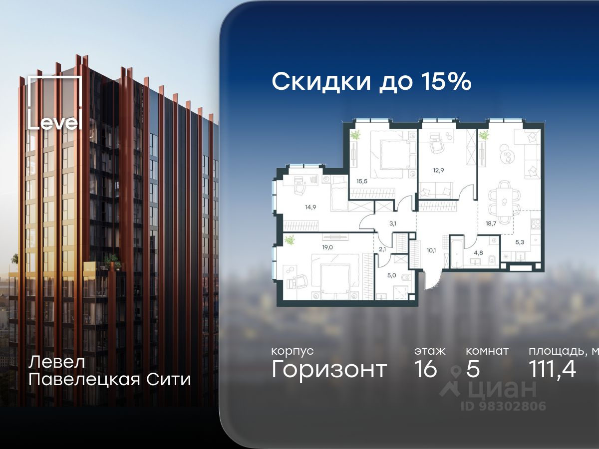 В Даниловском районе столицы (ЮАО) продаётся многокомнатная квартира площадью 111.40 кв.м без отделки. Квартира расположена на 16 этаже 20-этажного корпуса 'Горизонт' в жилом комплексе бизнес-класса Левел Павелецкая Сити. Высота потолков 3.00м.