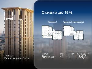 В Даниловском районе столицы (ЮАО) продаётся 4-комнатная квартира площадью 134.50 кв.м без отделки. Квартира расположена на 41 этаже 42-этажного корпуса 'Горизонт' в жилом комплексе бизнес-класса Левел Павелецкая Сити. Высота потолков 3.00м.