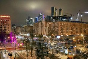 Из окон квартиры открываются потрясающие виды на одну из сталинских высоток - гостиницу ''Украину", башни "Москвы-Сити'', Дом правительства и на знаменитые дома-книжки Нового Арбата.
