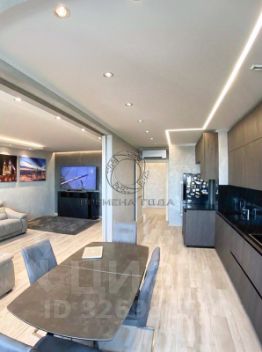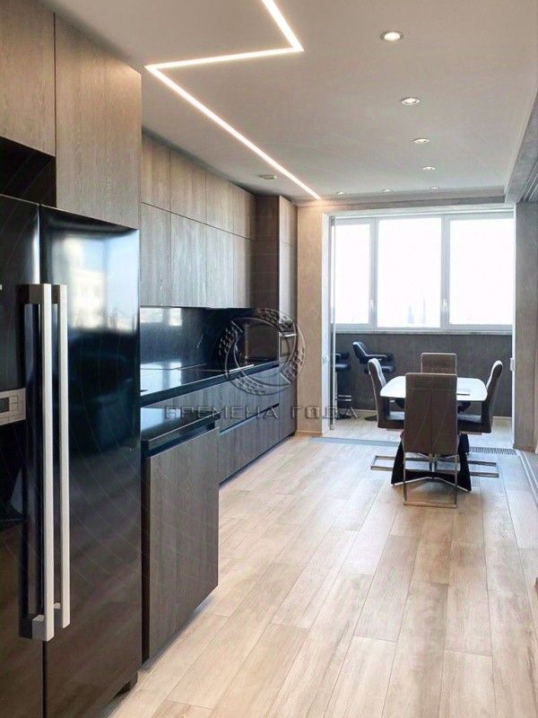 Планировка: кухня с обеденной зоной и гостиной (между кухней и гостиной есть раздвижная стеклянная перегородка), две мастер-спальни со своим с/у и гардеробными, гостевой с/у.