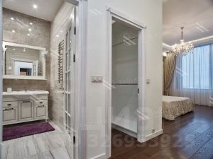 Мастер-спальней с гардеробом и собственным санузлом.