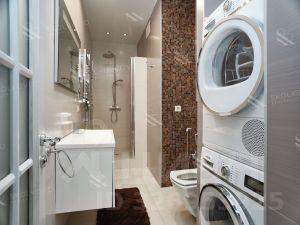Квартира оснащена современной системой кондиционирования, приточной вентиляцией и теплым полом, что обеспечивает комфортный микроклимат в любое время года.