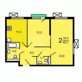 Комнаты: изолированные, 22 м2 и 12 м2.