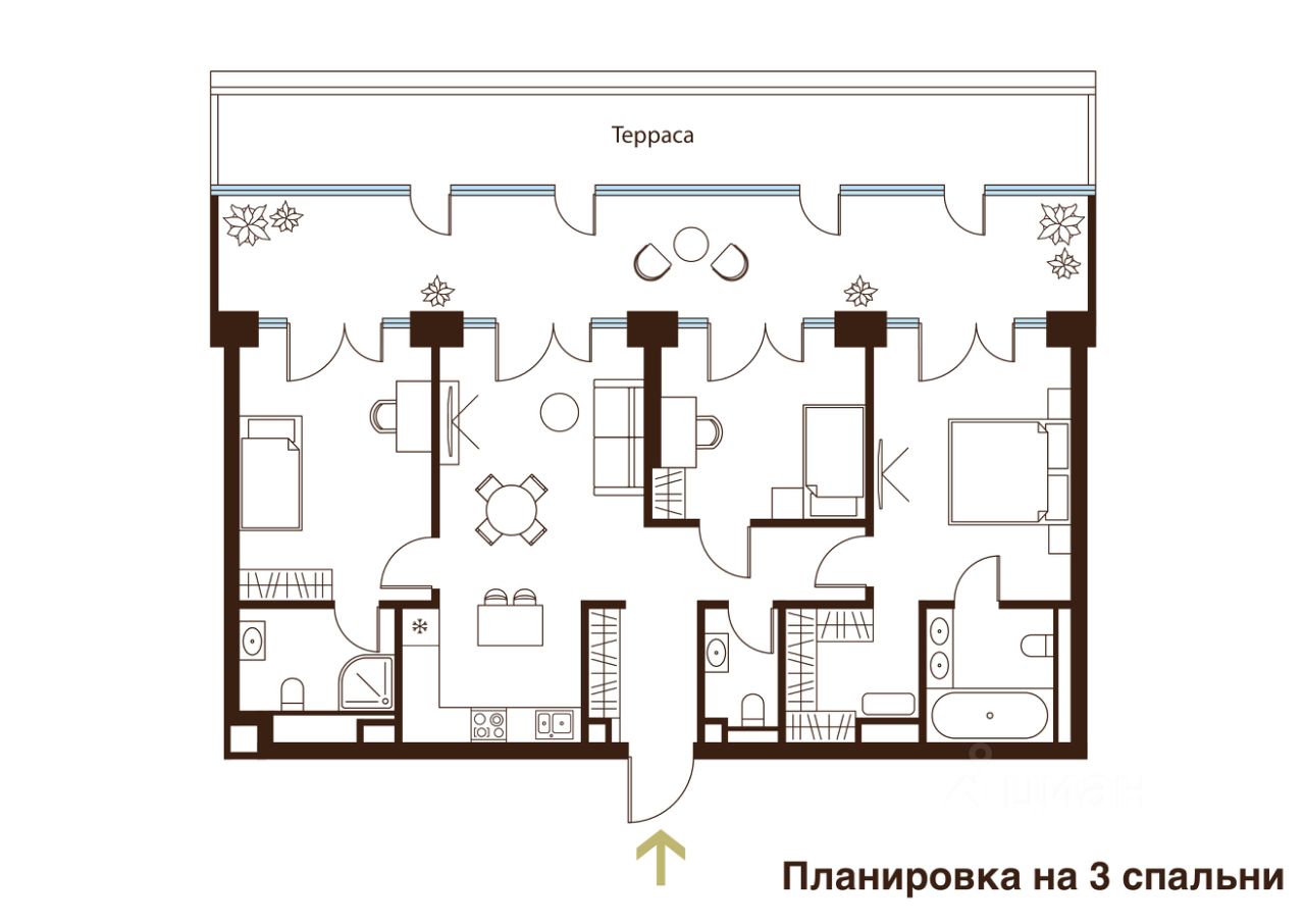Лоджия - для зимнего сада, а терраса доступная только на вашем этаже - редкая привилегия для утреннего кофе на свежем воздухе или камерных вечеров.