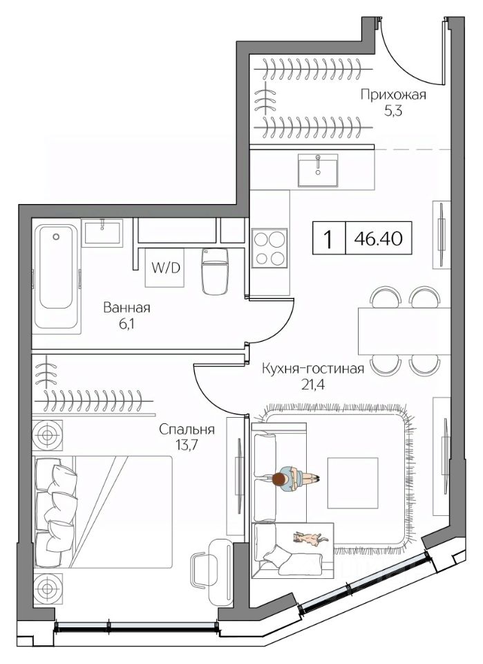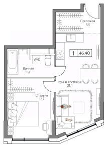 Общая площадь46,4 м²