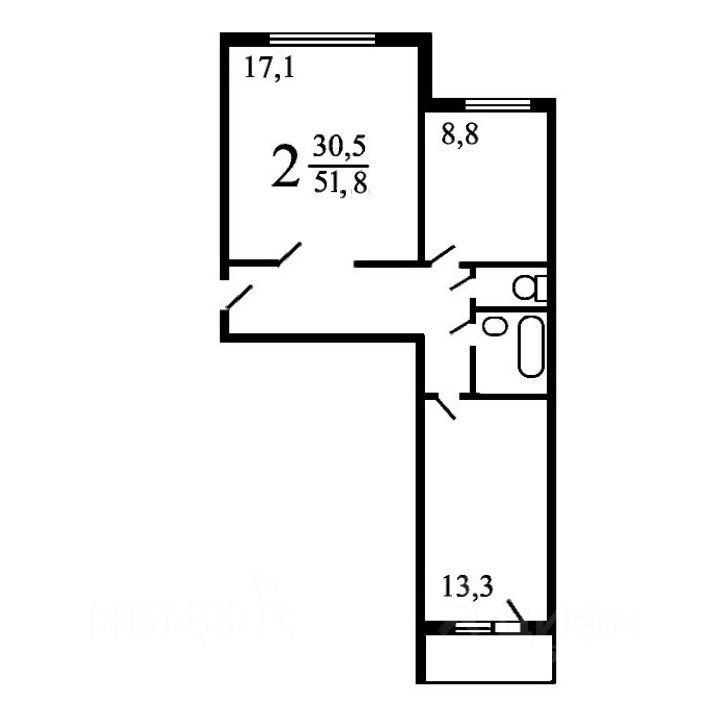 Продаётся двухкомнатная квартира, расположенная на 8-м этаже 12-тиэтажного дома по адресу: ул. Мнёвники 10 к.1. Общая площадь квартиры 51,8 кв.м: две комнаты 17,1 кв.м и 13,3 кв.м, кухня 8,8 кв.м, просторная прихожая, раздельный санузел, застекленный балкон.