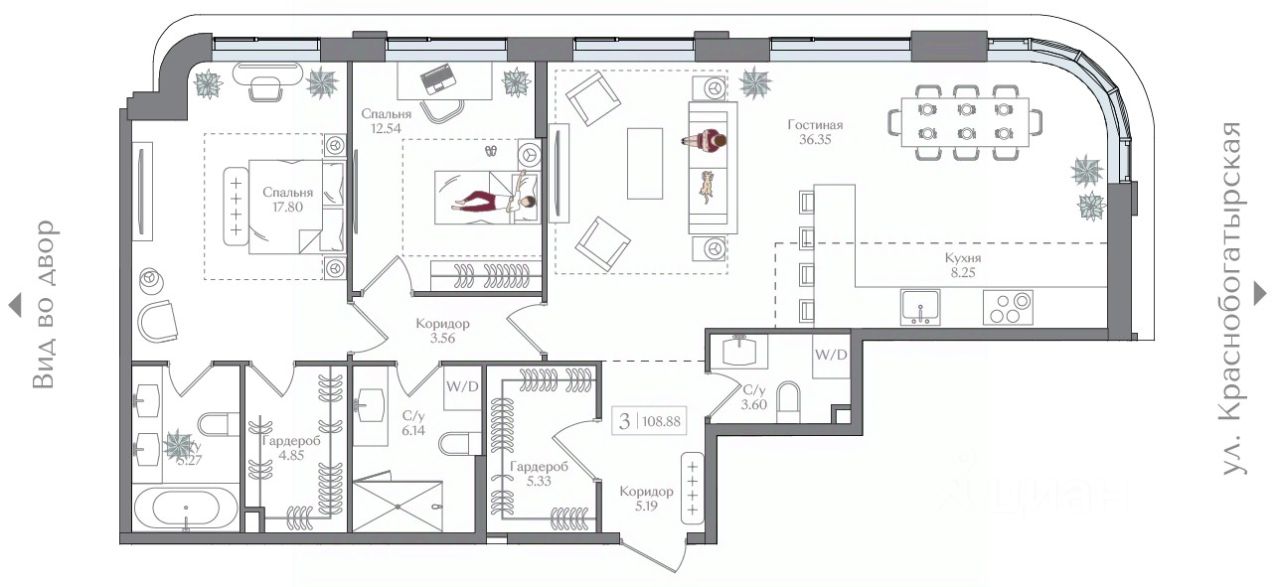 Продаётся 2-комнатная квартира в строящемся доме (Корпус 6 (II очередь)), срок сдачи: II-кв. 2027, общей площадью 108.88 кв.м., на 12 этаже. Жилой комплекс с подземной автостоянкой, отдельно стоящими ДОУ, БНК (учебный корпус) и многофункциональным центром.