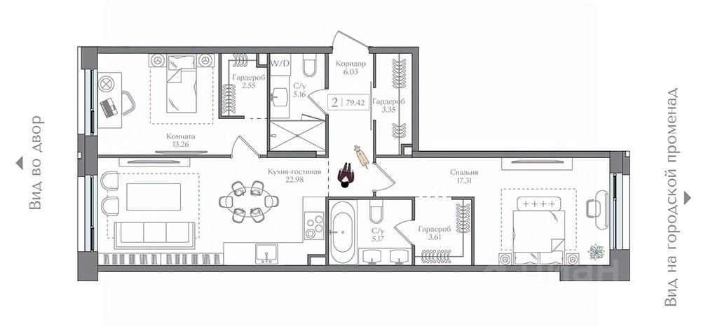 Продаётся 2-комнатная квартира в сданном доме (Корпус 3 (I очередь)), срок сдачи: II-кв. 2025, общей площадью 79.42 кв.м., на 3 этаже. Жилой комплекс с подземной автостоянкой, отдельно стоящими ДОУ, БНК (учебный корпус) и многофункциональным центром.