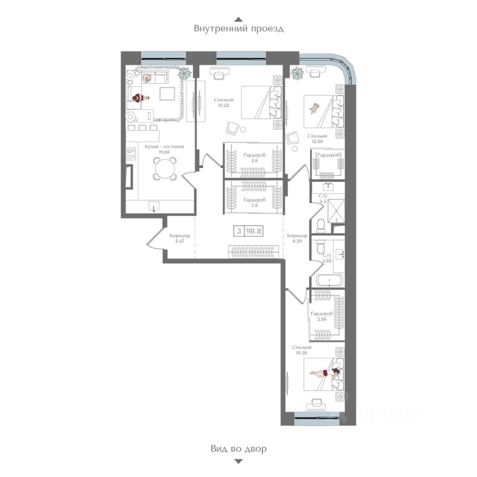 Продаётся 3-комнатная квартира в сданном доме (Корпус 2 (I очередь)), срок сдачи: II-кв. 2025, общей площадью 98.8 кв.м., на 2 этаже. Жилой комплекс с подземной автостоянкой, отдельно стоящими ДОУ, БНК (учебный корпус) и многофункциональным центром.