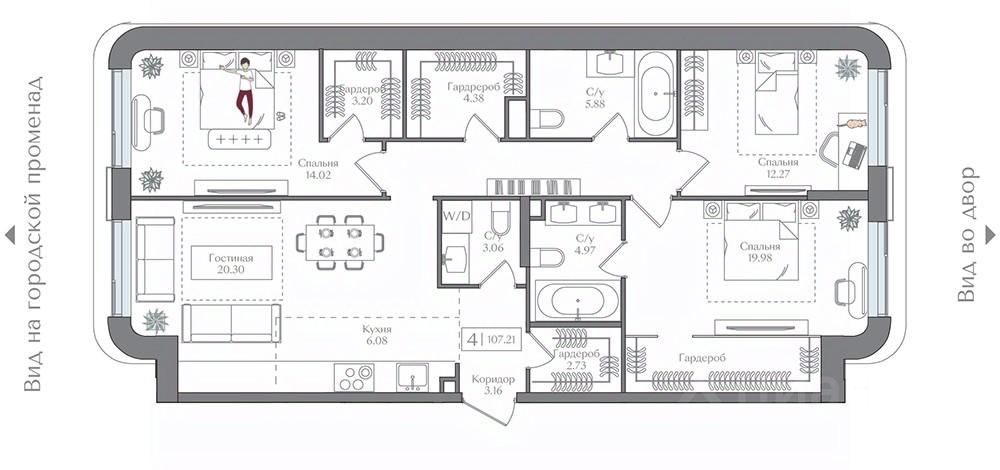 Продаётся 3-комнатная квартира в строящемся доме (Корпус 5 (II очередь)), срок сдачи: II-кв. 2027, общей площадью 107.21 кв.м., на 13 этаже. Жилой комплекс с подземной автостоянкой, отдельно стоящими ДОУ, БНК (учебный корпус) и многофункциональным центром.