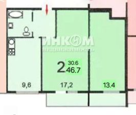 Идеально для семьи с детьми: 46.7 м? с отличной кухней 9.6 м? и двумя лоджиями. Комнаты 17.2 м? и 14.4 м?(с нишей под встроенный шкаф), на полу паркет.