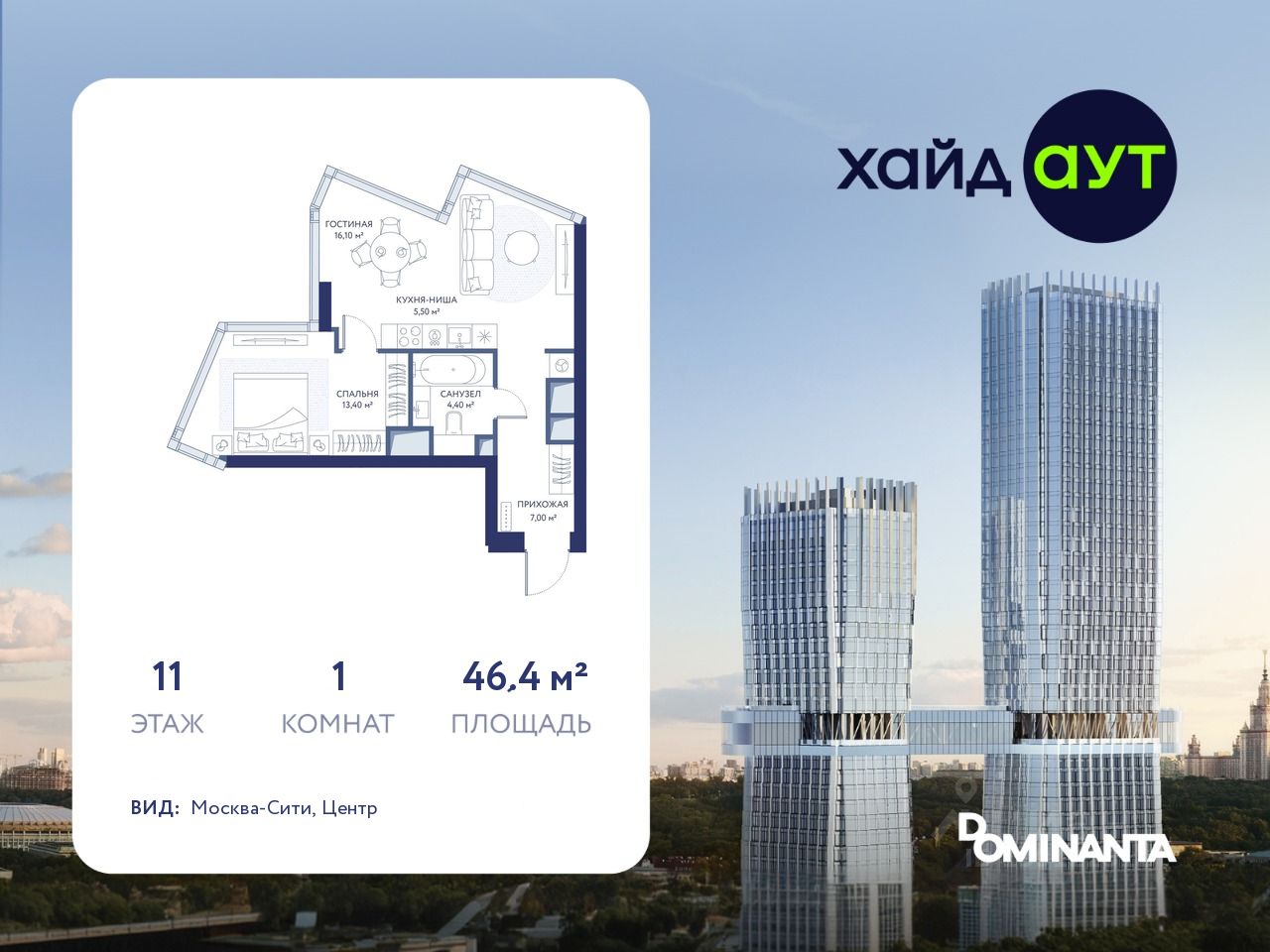 ХАЙДАУТ — премиальный проект компании Dominanta. Это новый уровень жизни и комфорта без компромиссов. Две башни — 34 и 49 этажей — открывают захватывающие виды на Москву. Архитектурной доминантой проекта становится мост, соединяющий башни на высоте 80 метров.